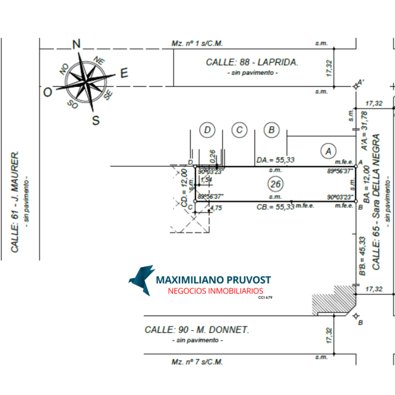 • Dimensiones 12 X 55,33 – 664 m2.